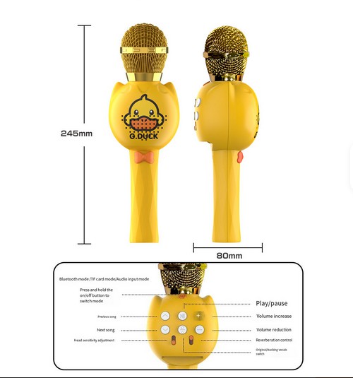 Zestaw Karaoke dla Dzieci Kaczor Duck - Mikrofon Bluetooth + 100 Polskich Piosenek Dla Dzieci na Karcie TF (16 GB)